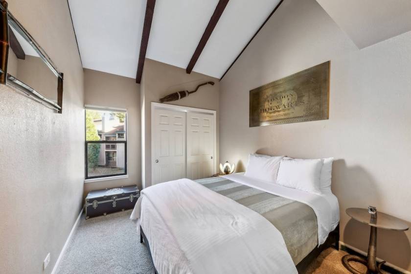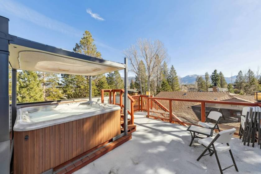 Finally, this pet-friendly rental puts you right at the base of world-famous Heavenly Ski Resort, with the California Lodge just a short walk across the street. Inside, wide windows and a gas fireplace give the living room a warm mountain feel. Visible from the second-floor balcony of the home are the Aerial Tramway and Gunbarrel Express lifts. With four bedrooms, a fenced backyard, and easy access to hiking, biking, and local restaurants, it’s an easy choice for a family looking for that classic South Lake Tahoe atmosphere.
