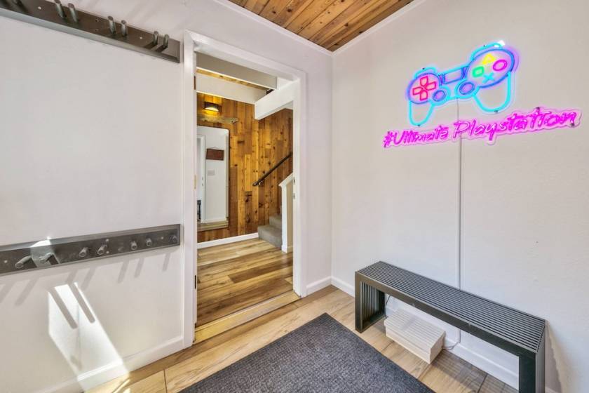 This rustic cabin-style home sits in a popular neighborhood, offering convenient access to the best of South Lake Tahoe. Wood paneling adorns the walls, giving this property a modern mountain feel. For entertainment, the home features a massive 85-inch TV, a PlayStation 5, a basketball hoop, and poker chips for guests' enjoyment. Just outside the naturally lit living room lies a balcony with a grill, perfect for relaxing at any time of day and enjoying the Tahoe air. If you’re looking for a short-term stay with a small group, you can’t go wrong with this property.